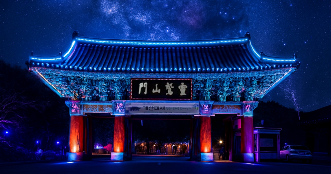 영축총림 통도사(주지 현덕 스님)가 개산 1380주년을 맞아 미디어아트 프로젝트 ‘산문의 빛, 마음의 정원에서 인연을 만나다’를 개최한다. 이번 행사는 2025년 10월 3일부터 10월 29일까지 통도사 경내 전역에서 진행된다.