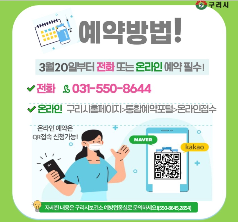 요약: 만65세 이상 구리시민(6개월 거주), 저소득층은 연령무관 접종가능